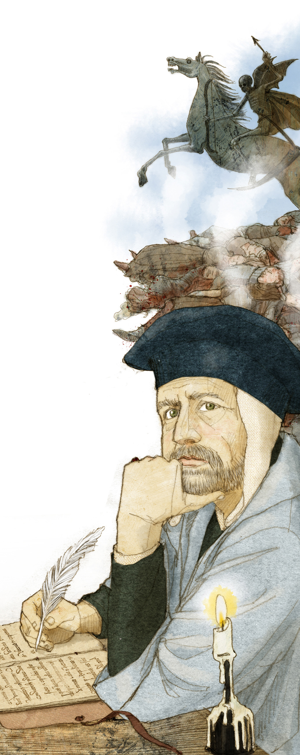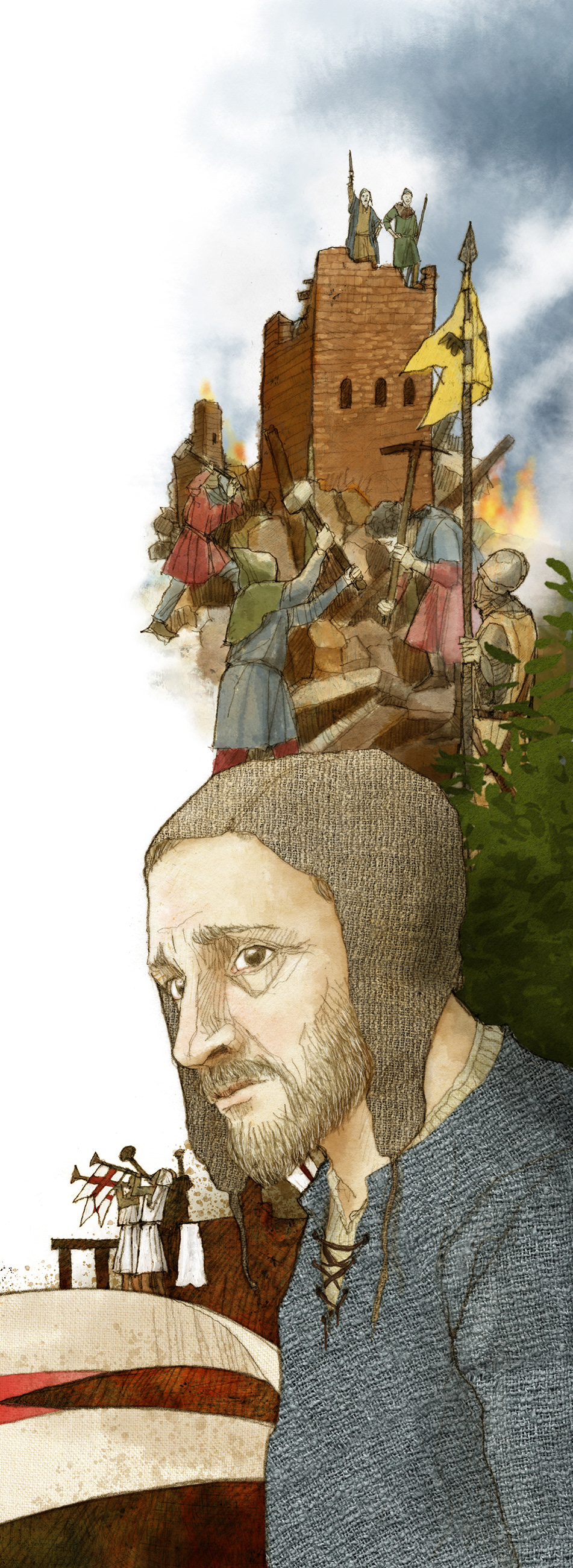 Illustrations for a Secondary School's History book, showing the events of every period – chapter - through portraits of common people. Mondadori Education